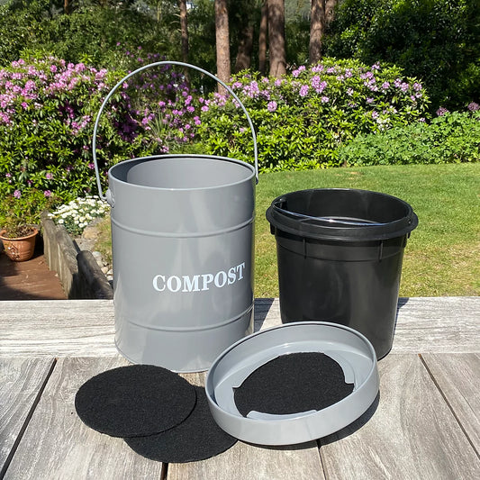 Large Kitchen Composter Caddy with Inner Bucket and 3 Filters in French Grey