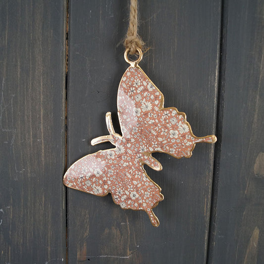 Hanging Metal Decorations - Green Heart or Brown Butterfly