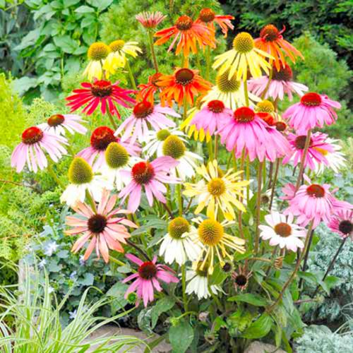 (examples of what is included but not guaranteed): Achillea Summer Pastels, Delphinium Pacific Giants Mixed, Digitalis (Foxglove) Camelot Mix, Hollyhocks, Echinacea, Gaillardia Arizona Sun, Geum Mrs Bradshaw, Kniphofia Flamenco, Lobelia Queen Victoria, Lupin Gallery Mix, Verberma bonariensis, Leucanthemum Snow Lady.
