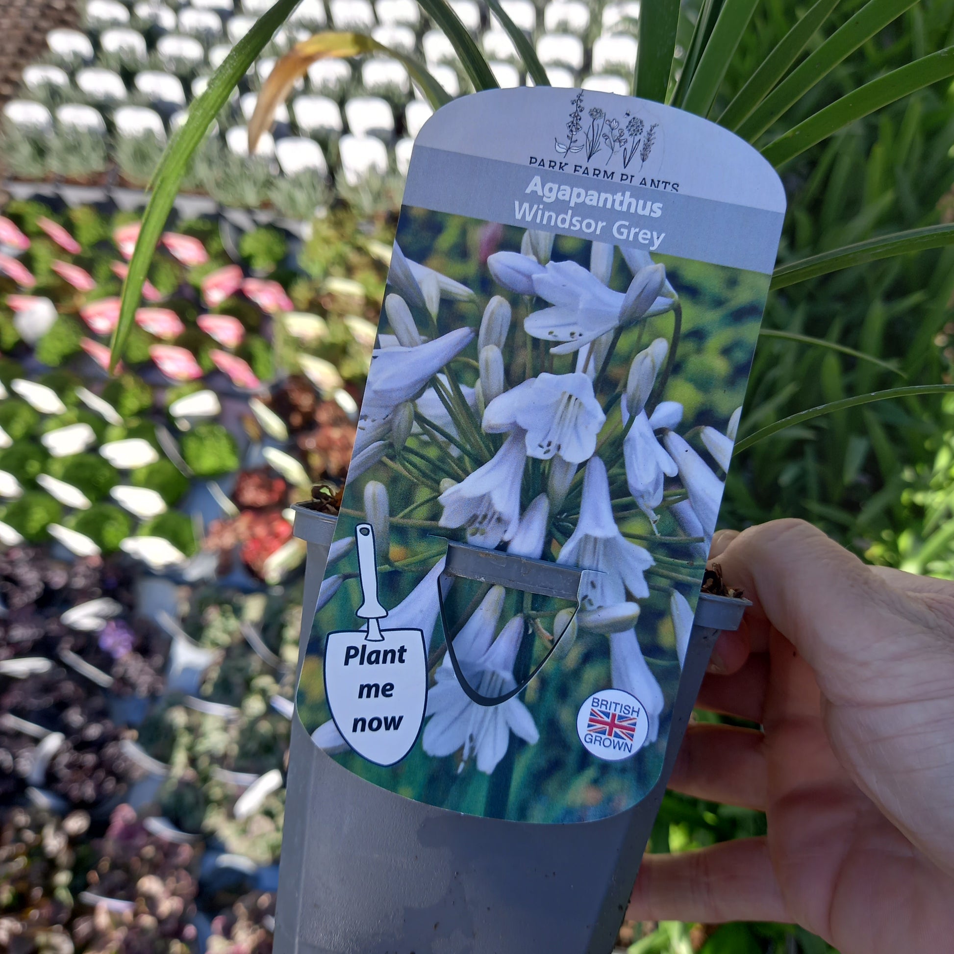Reaching around 90cm (36") tall with a spread of 45cm (18"), Agapanthus ‘Windsor Grey’ is ideal for sunny borders, gravel gardens, or patio pots. It thrives in full sun and well-drained soil, where it will flower reliably year after year. Drought-tolerant once established and low-maintenance, it makes an excellent choice for adding long-lasting summer interest.