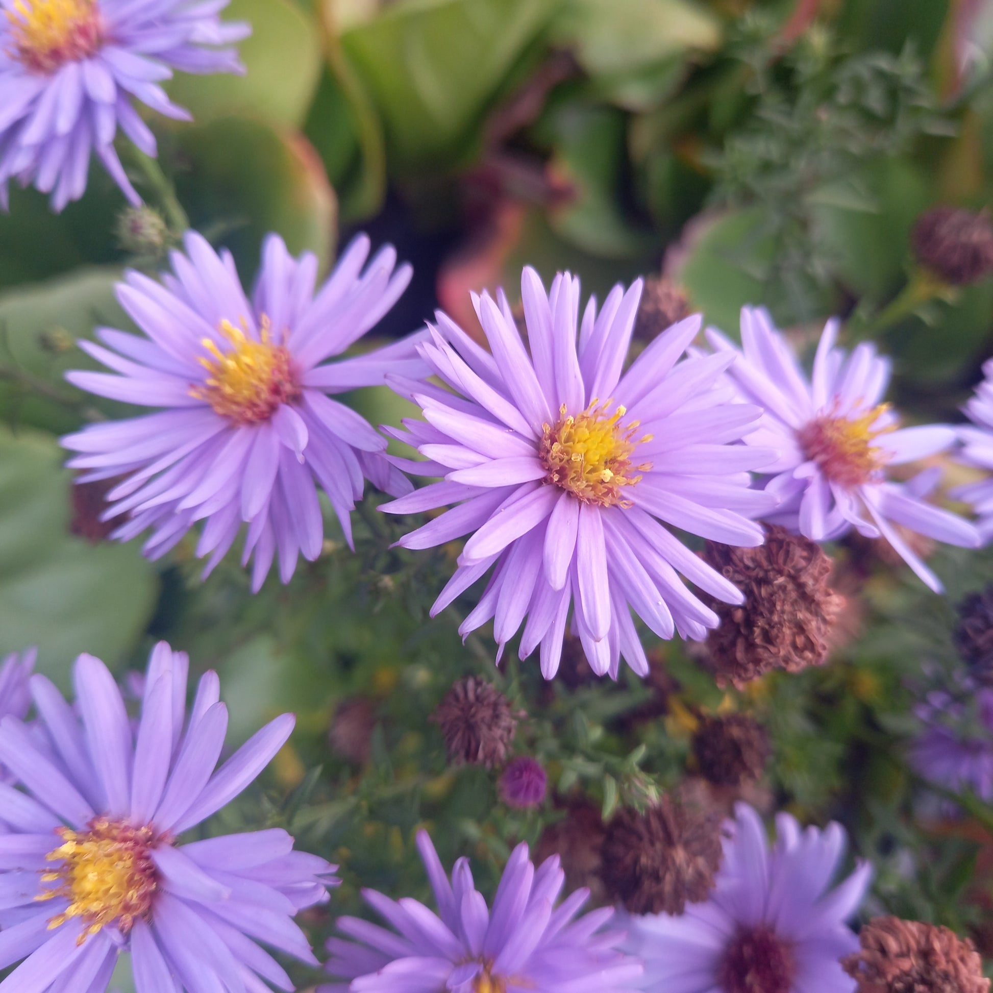 A compact perennial that grows to about 40cm (16") tall with a spread of 45–50cm (18–20"). It produces masses of violet-blue, daisy-like flowers with golden yellow centers during September and October. This variety is ideal for adding late-season colour to borders, beds, and containers, and is also attractive to bees and butterflies.