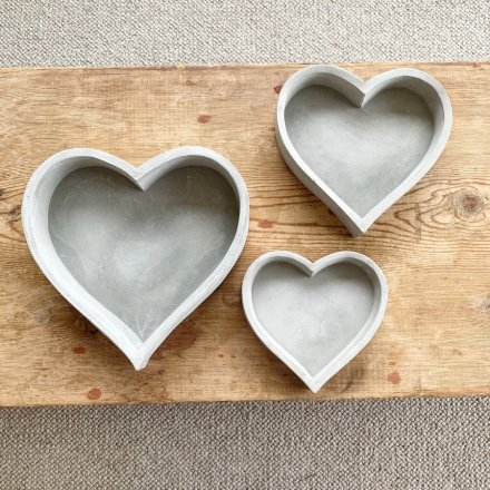 Stay on trend with these effortlessly cool rough luxe heart trays made from cement.