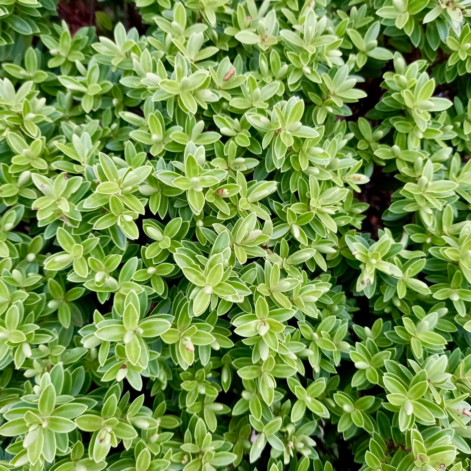 Rich Green Foliage: The evergreen foliage of 'Toparia' is a luscious shade of green, providing a consistent backdrop of colour and texture throughout the year. The leaves are glossy and lance-shaped, adding a touch of elegance to the overall appearance of this Hebe variety.