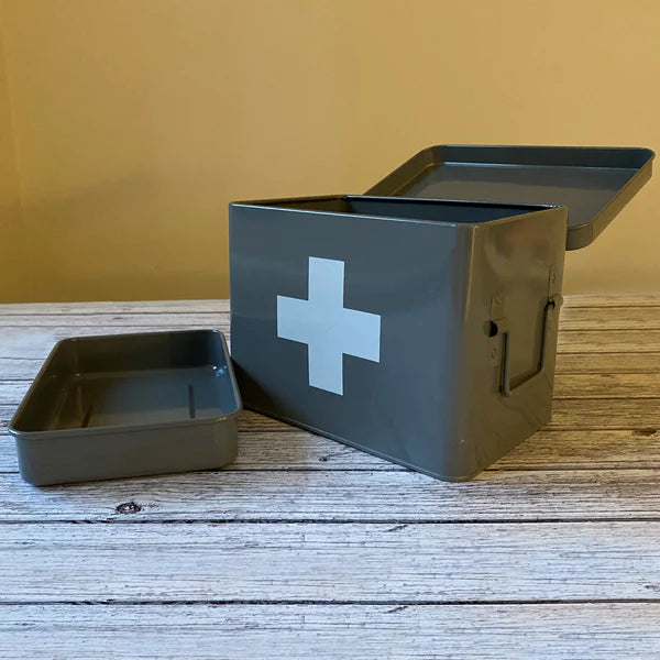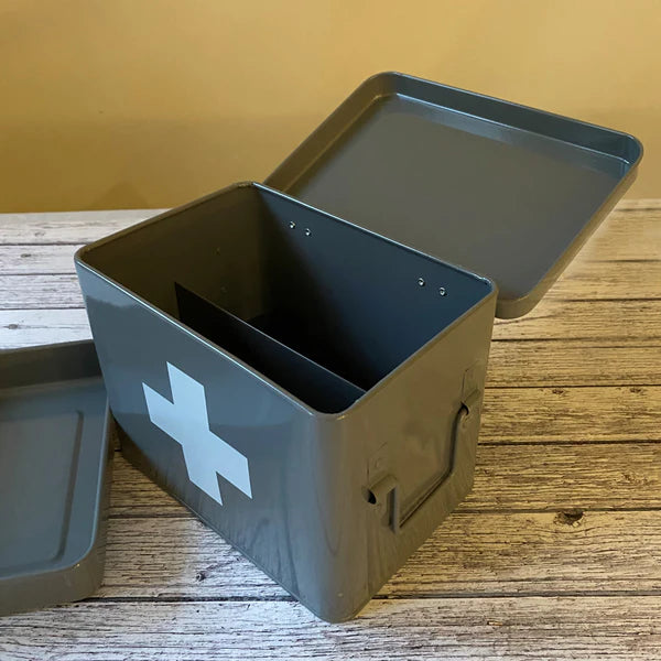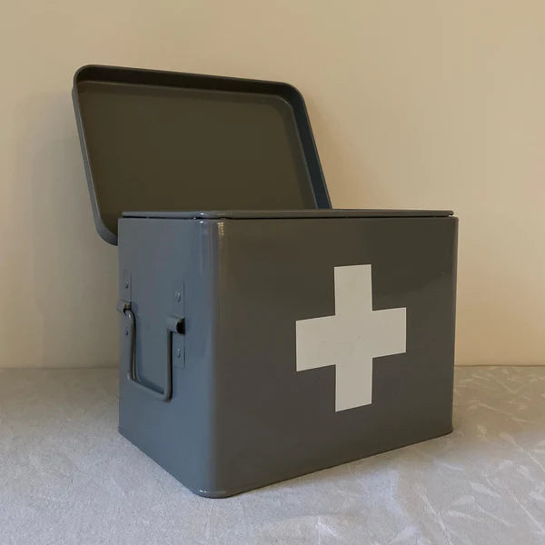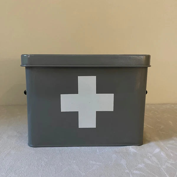 Medical Supplies Storage Tin in French Grey