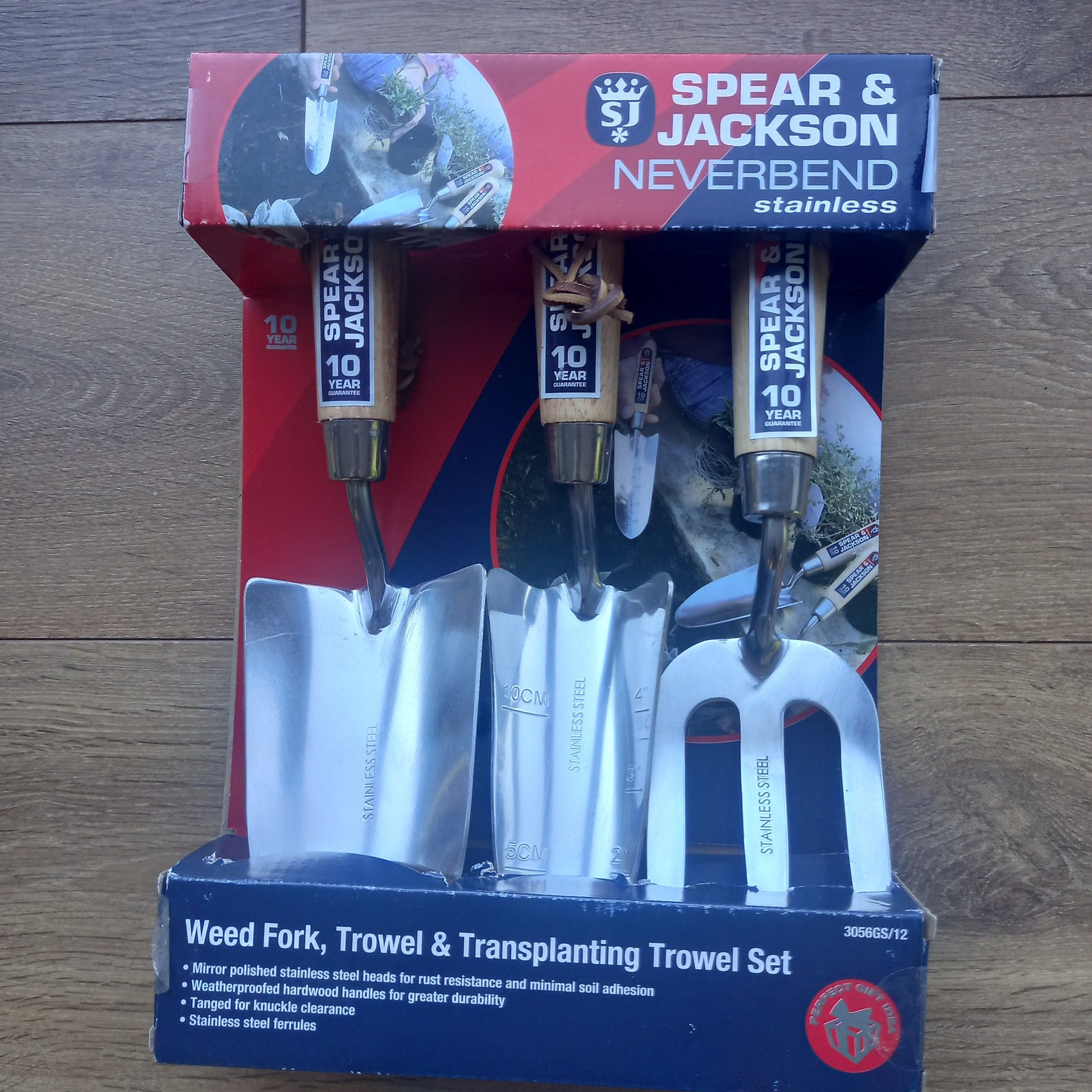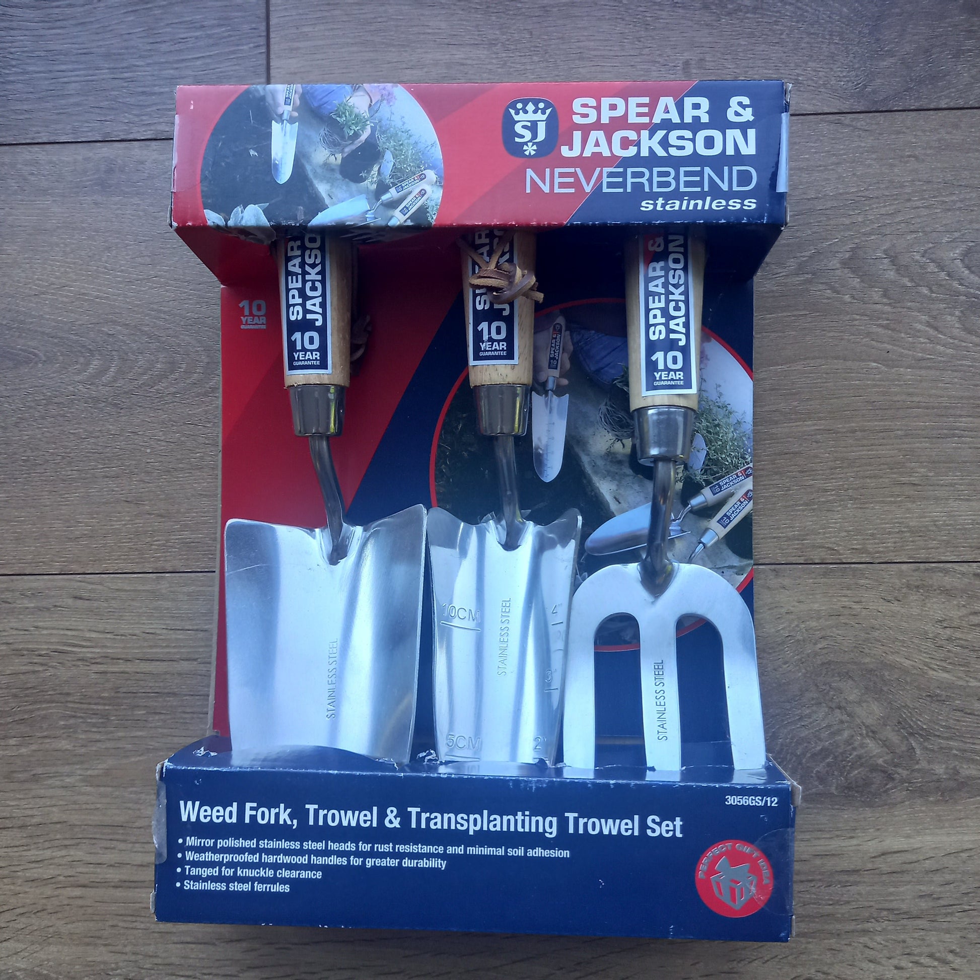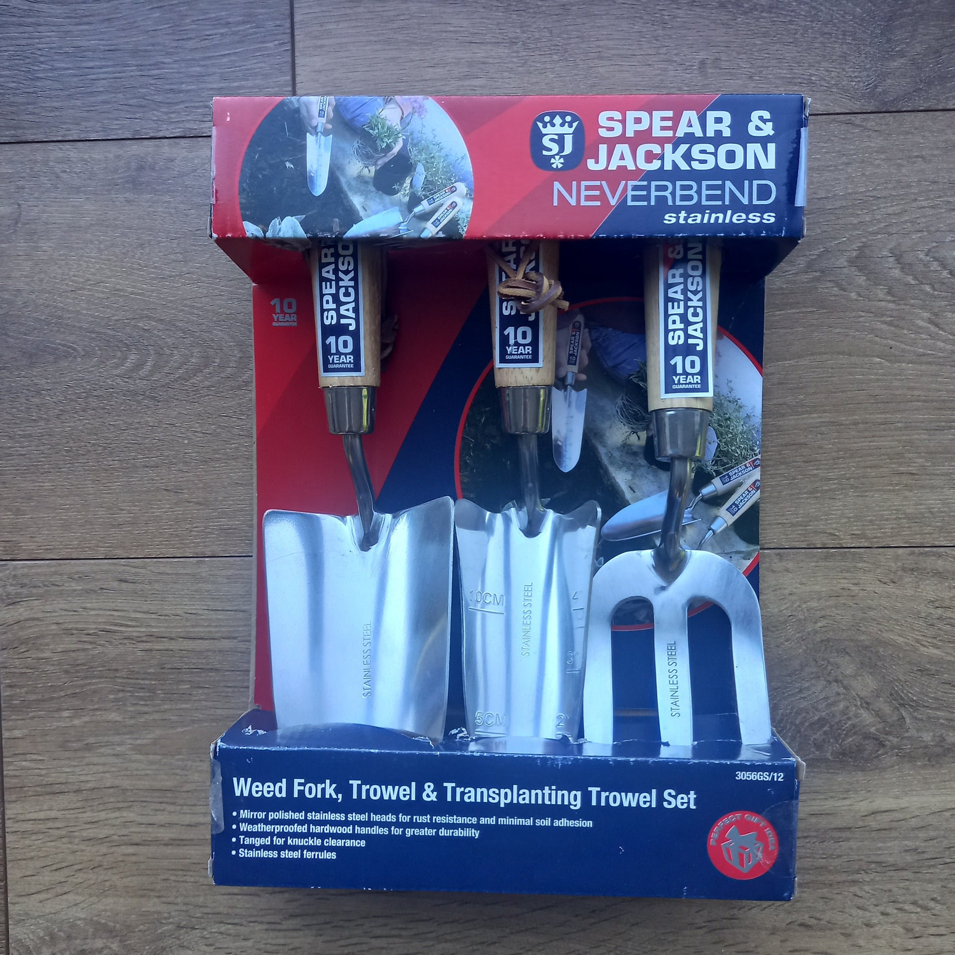 The Spear and Jackson Traditional Stainless range of hand tools features durable hardwood handles and will appeal to gardeners who prefer their tools with a 'traditional' appearance. This set includes a garden trowel, weed fork and a transplanting trowel. It is supplied in a Spear and Jackson gift box and comes with a 10 year guarantee.